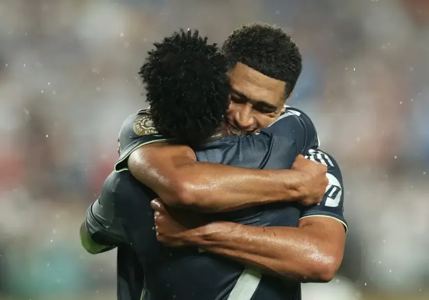 皇马(352):库尔图瓦/吕迪格、琼阿梅尼、怀森/阿诺德、贝林厄姆、巴尔韦德、居勒尔、弗兰-加西亚/维尼修斯、姆巴佩